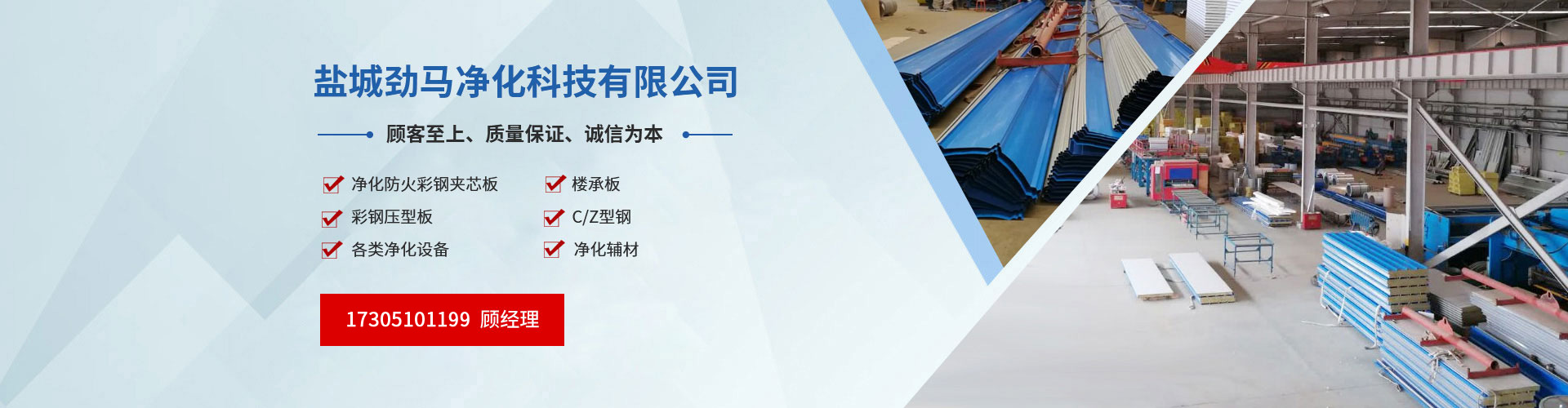 鹽城勁馬凈化科技有限公司是一家專(zhuān)業(yè)生產(chǎn)凈化防火彩鋼夾芯板、彩鋼壓型板、C/Z型鋼,樓承板的廠(chǎng)家,并銷(xiāo)售各類(lèi)凈化設(shè)備,凈化輔材的多元化企業(yè)。